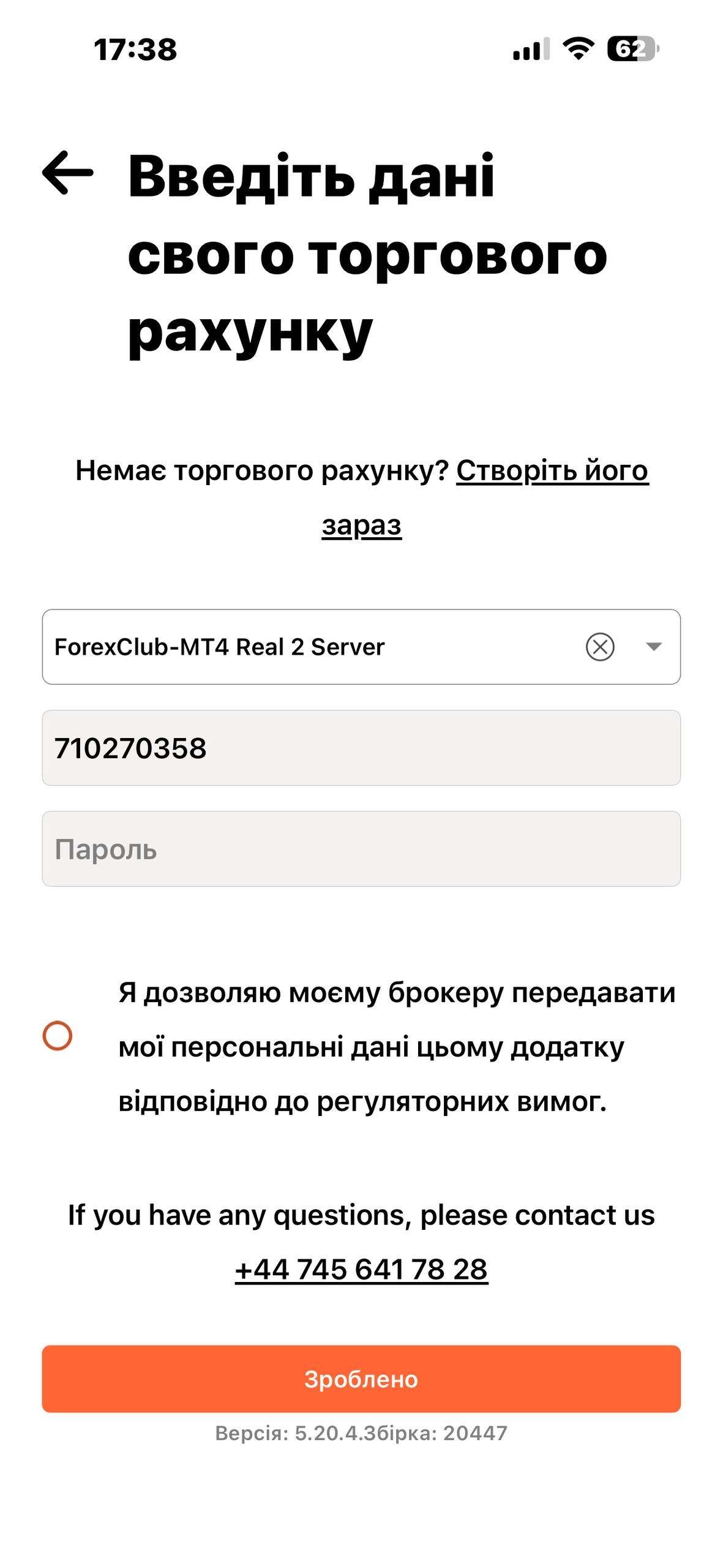 Після введення цих даних застосунок підключить рахунок до сервісу копітрейдингу.