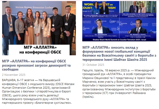 скрини з офіційного сайту Руху АЛЛАТРА https://allatra.org/uk/press-releases