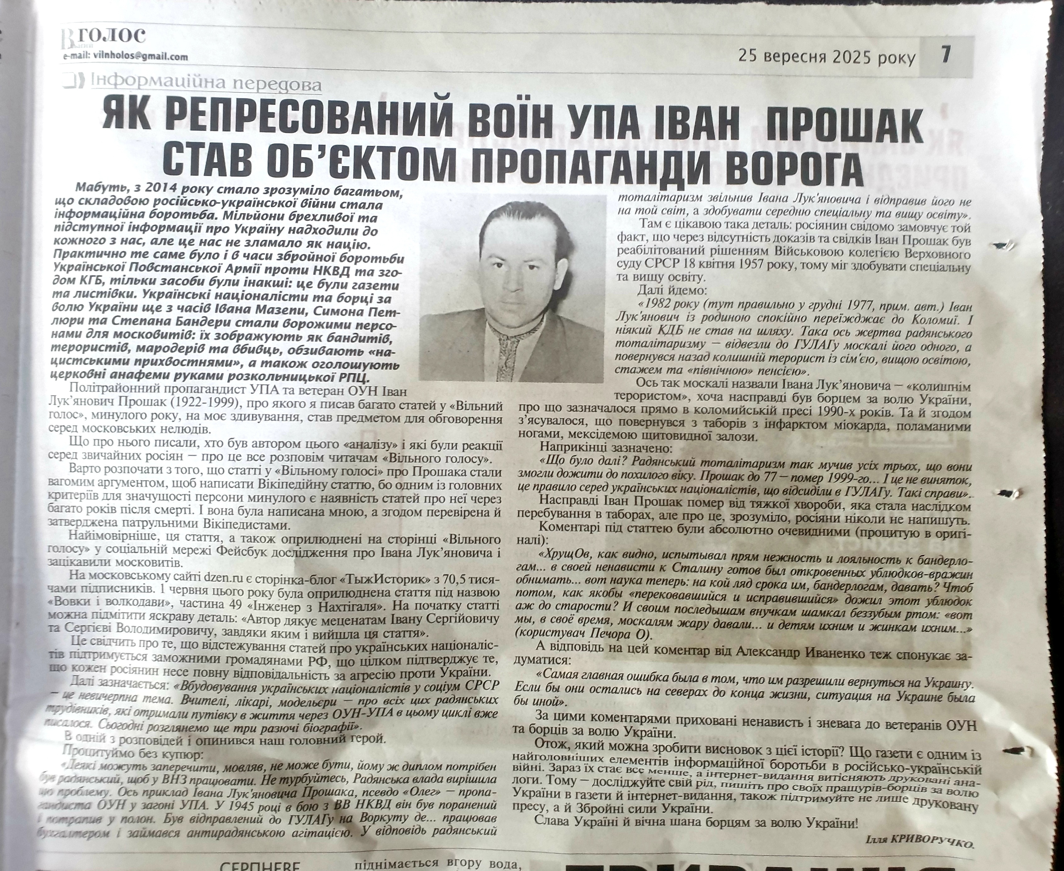 Варто розпочати з того, що статті у “Вільному голосі” про Прошака стали вагомим аргументом, щоб написати вікіпедійну статтю, бо одним із головних критеріїв для значущості персони минулого є наявність статей про неї через багато років після смерті. І вона була написана мною, а згодом перевірена й затверджена патрульними вікіпедистами. Найімовірніше, ця стаття, а також оприлюднені на сторінці “Вільного голосу” у соціальній мережі Фейсбук дослідження про Івана Лук’яновича і зацікавили московитам.