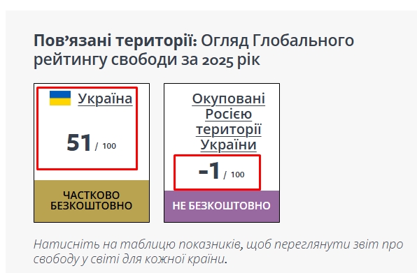України -1 зі 100, тоді як Україна 51 зі 100.