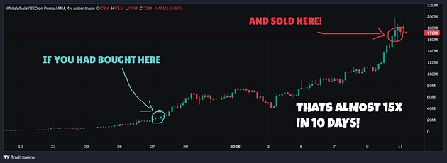 У центрі цього кейсу — мемкоїн $WHITEWHALE, запущений у мережі Solana. Сам сюжет подається як приклад того, як невелике раннє вкладення дало прибуток у масштабі, який змінює життя. Увагу до токена привернуло те, що він не зник одразу після запуску, як це часто буває з подібними монетами, а отримав підтримку спільноти та почав рости.