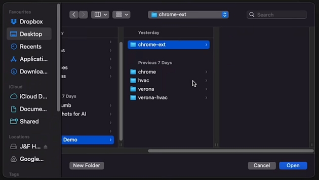 Перед початком потрібно підготувати робочий простір. Для цього створюється окрема папка на комп’ютері, куди Claude буде записувати всі файли майбутнього розширення. Це важливо, тому що саме цю папку ви потім завантажите у Chrome для тестування.