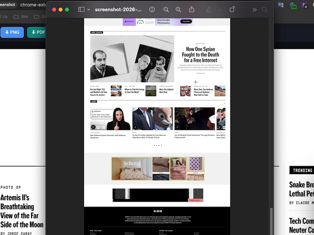 Можна попросити додати іконку камери в тулбар, щоб після кліку розширення автоматично прокручувало сторінку, робило кілька скриншотів, а потім зшивало їх в одне довге зображення. Далі варто одразу вказати, що результат має відкриватися в новій вкладці та зберігатися у PNG або PDF.