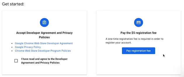 Після цього доведеться прийняти умови та сплатити одноразовий реєстраційний внесок у 5 доларів. Це не плата за одне розширення, а вхід у систему публікації загалом. Після реєстрації ви зможете завантажувати й інші свої розширення в майбутньому.