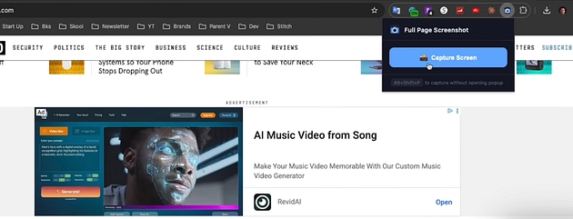 Далі його можна запустити на будь-якому сайті й перевірити, чи виконує він потрібну дію. Наприклад, якщо це інструмент для скриншотів, варто одразу відкрити довгу сторінку та протестувати, чи коректно відбувається прокрутка, склеювання і відкриття фінального файлу.