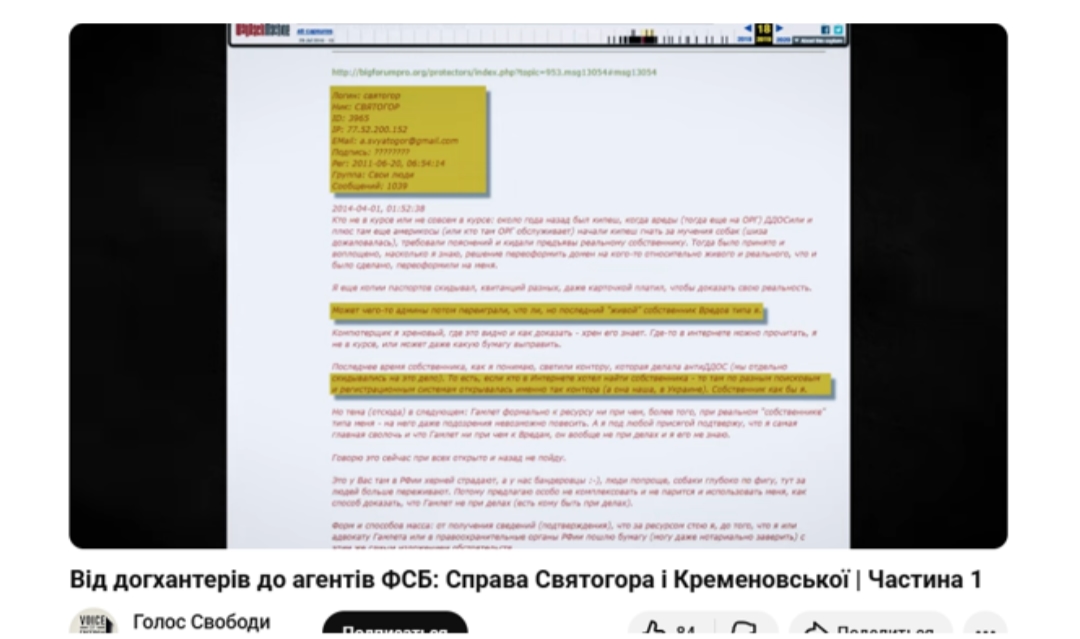 Агенти фсб #Кременовська та #Святогор на сайті догхантерів - докази.