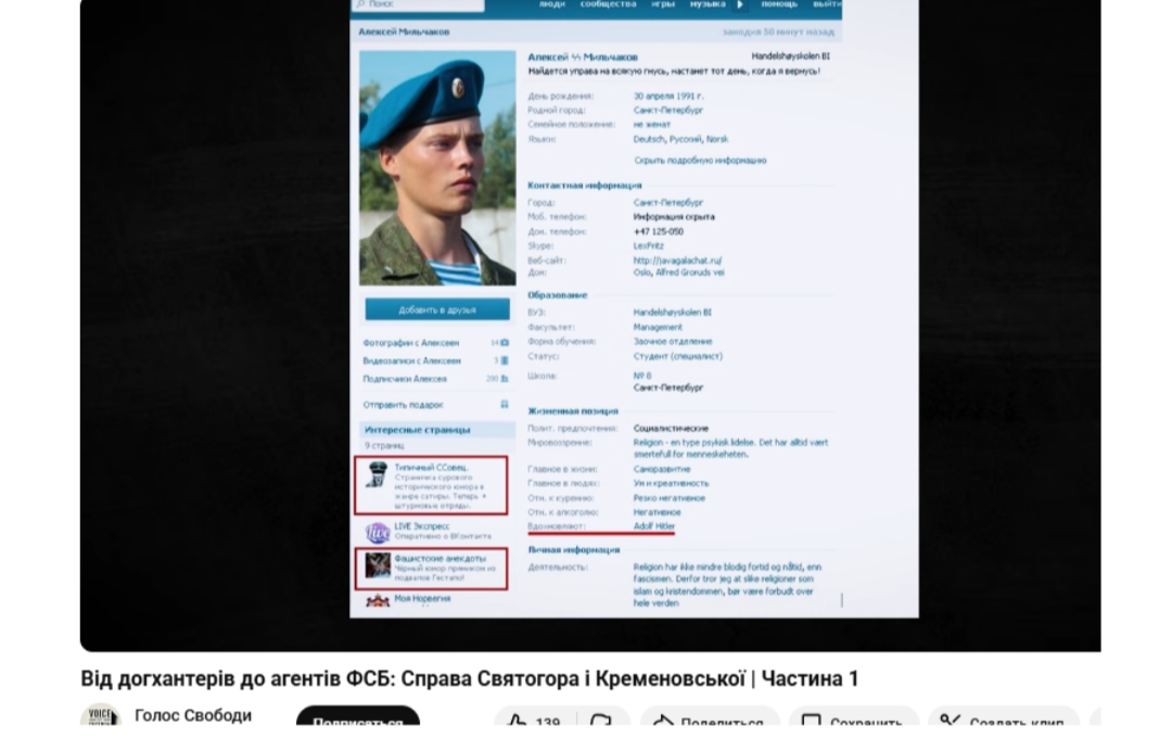Подивіться на цього персонажа. НацUст із санкт-петербурга, відомий у своїх колах під кличкою Фріц. Сам про себе сказав: “Я - нацист.” Ще до 2014 року Мільчаков був активним учасником дохантерських спільнот. Він публічно знущався над тваринами, викладав фото з катованими та вбитими собаками.