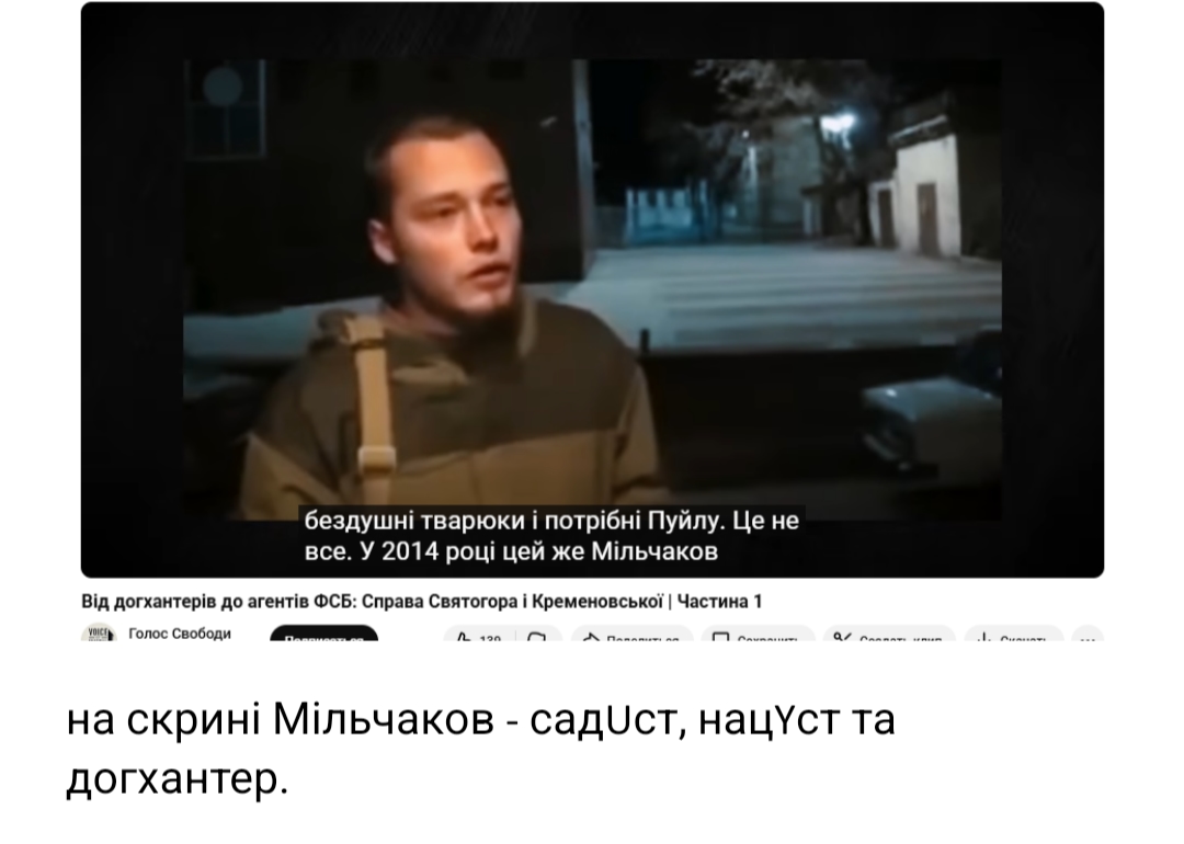 У квітні 2014 року громадянин росії Ігор Гіркін Стрілков прибув з анексованого Криму до Слов'янська. Пізніше він публічно визнав, що саме його загін запустив маховик війни в Україні у 2014 році. І такі садUсти головорізи до хантери, як Мільчаков, були жорстокою машиною вбивств заради терору місцевих, створення сепаратистів та захоплення територій.