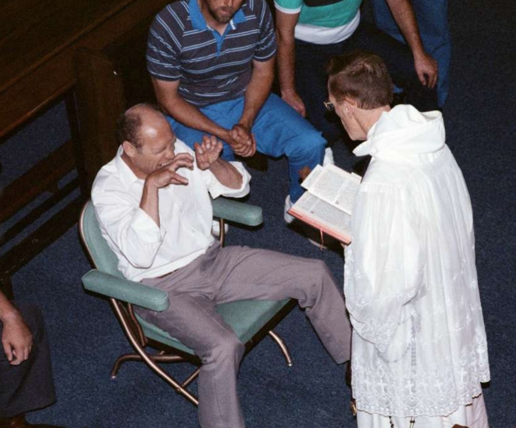 «Воррени вмовили Білла приїхати до їхньої церкви в Коннектикуті й пройти обряд екзорцизму під керівництвом єпископа Роберта Маккенни. Білл погодився й у 1989 році разом із дружиною здійснив подорож, спонсоровану таблоїдом The People. Уночі перед екзорцизмом Білл спробував задушити дружину вві сні. Сам обряд йому спершу не здався переконливим — пів години латинської служби й нічого. Але потім його обличчя перекосилося, руки скрутилися в пазурі. Маккенна наказав демону покинути тіло. Вибух шаленства був лише один — і відразу зник. Усе записали на плівку».
