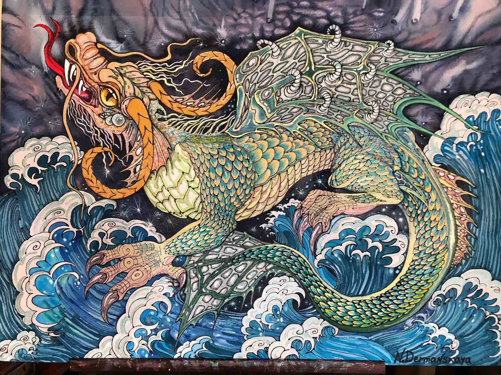 Скажімо, портрет дракона. Про що він говорить у контексті живописної майстерності пані Наталії? Мені здається, що це історія про подолання кордонів, розширення картини світу, пошук нових граней світосприйняття, внутрішню цілісність та абстрактне мислення.
