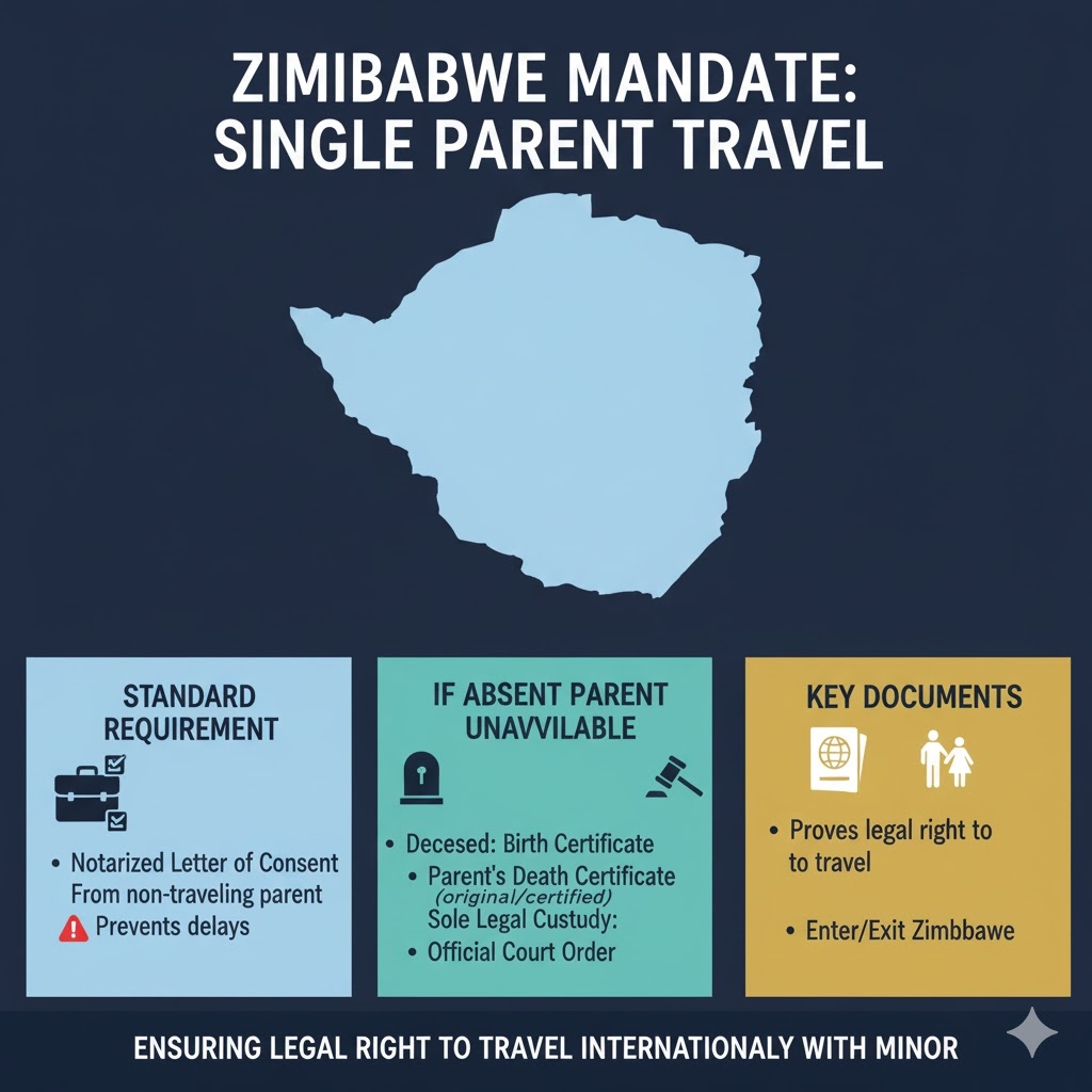 If the child is traveling with only one parent, the non-traveling parent must provide the notarized letter of consent detailed above. This single document is the key to preventing delays when you enter or exit Zimbabwe.