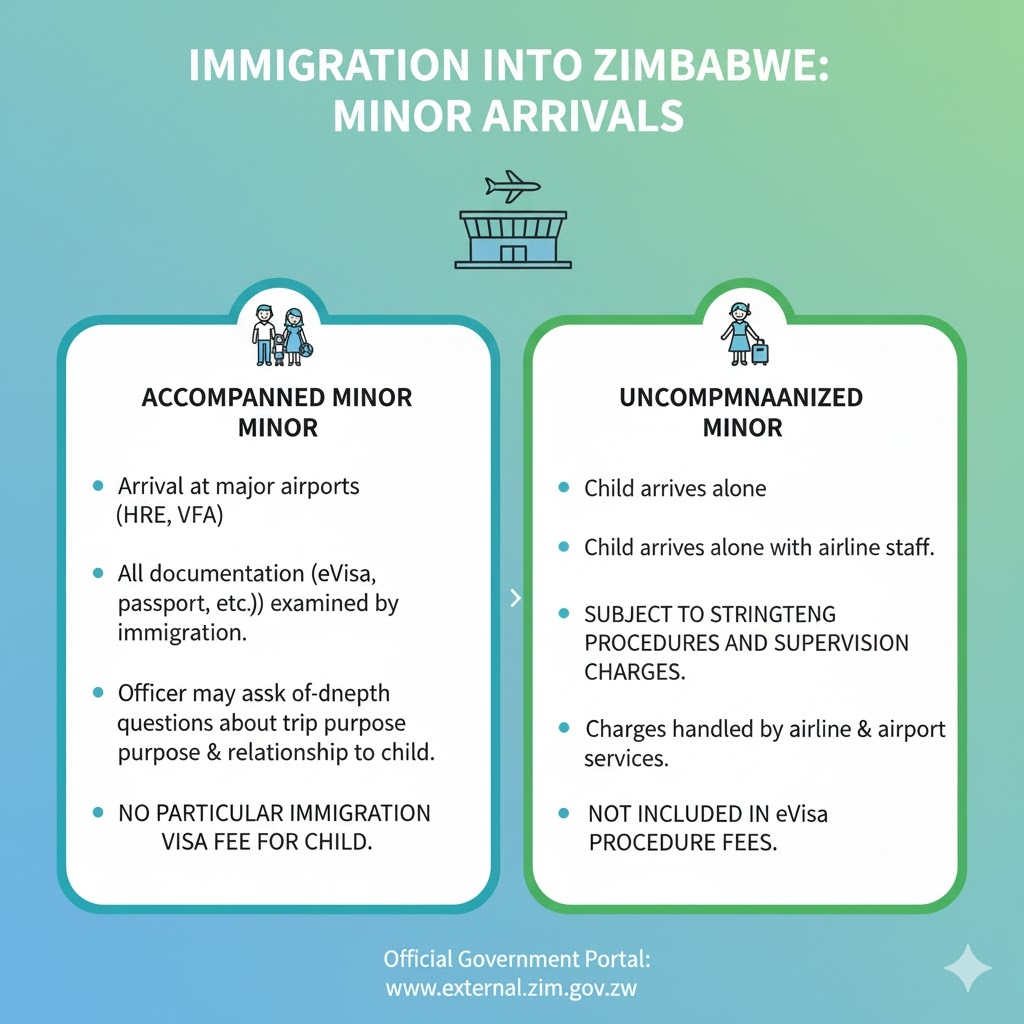 It is important to note that the eVisa just gives access to travel to one of the ports of entry in Zimbabwe. The immigration officer on arrival will maintain the ultimate power and will examine the documentation of the minor, basically paying attention to the parental consent and legal guardianship before stamping the actual entry permit.