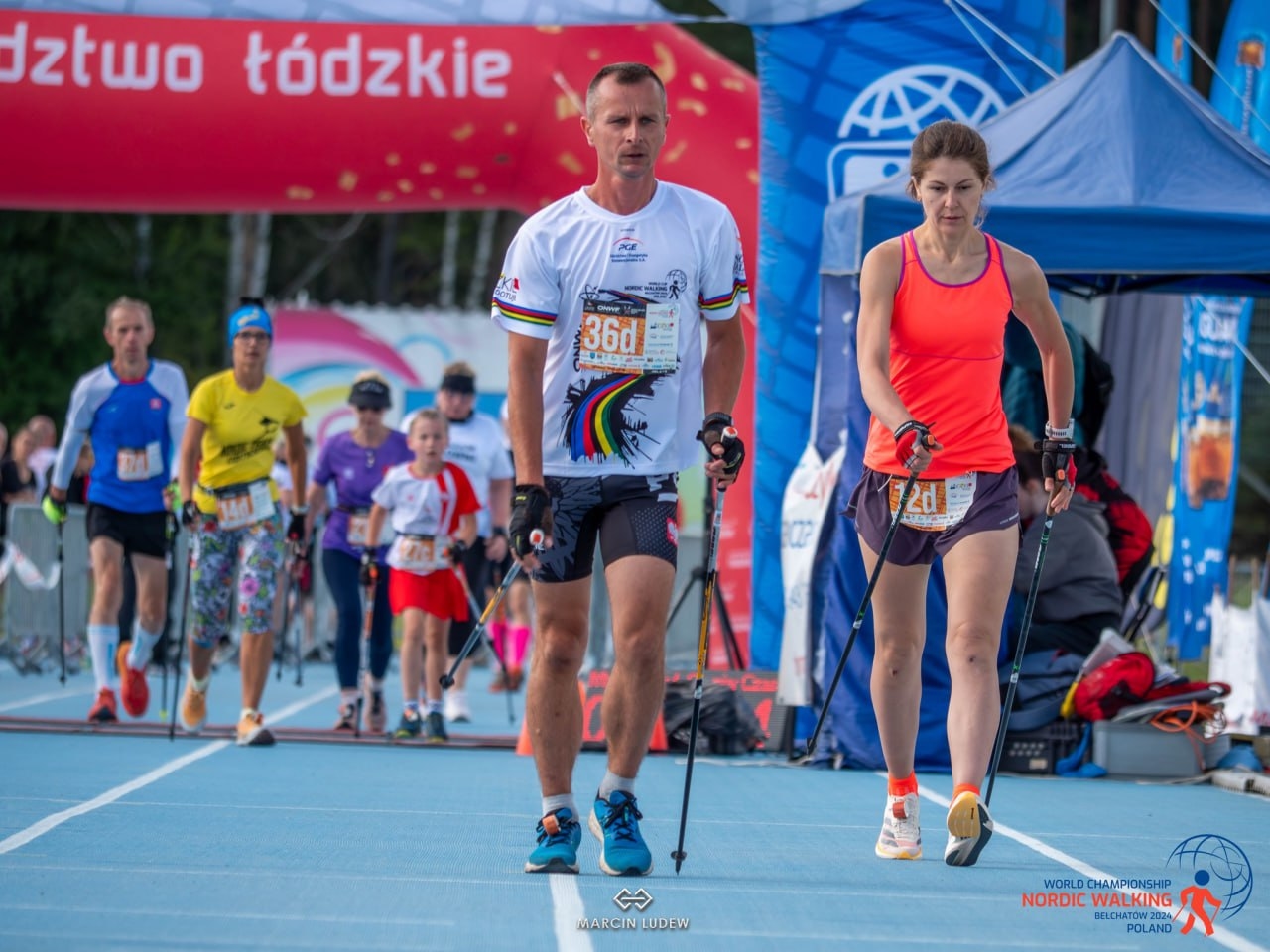 Я хотів би звернутися персонально, пані Зоряна Зіновʼєва. Ваше зауваження було доречним, але не справедливим стосовно тільки мене - бо якщо глянути всі інших лідерів за мною - отже помилка одна і та сама. В чому було зауваження - моя п’ята не ступає одночасно з уколом палки. Точніше спочатку п’ята а потім укол. Хто ходить у швидкому темпі - розміє про що я. Поясню - щоб тримати шкидкий темп, спортмен повинен або збільшувати крок(що призводить до швидкої втоми та можливих травм), або збільшити каденс(швидше рухатися ногами). І якщо палки відповідають дожині по форулі і твоєму росту, в тебе банально не встигають руки зробити укол по переду, відштовхування та відпускання палиці назад. Бо нога робить рух вперед і назад, а рука крім руху вперед і назад робить ще укол, відштовхування та відпускання позаду бедра. Через це ноги трошки шкидше рухаються за руки, хоча ти можеш цього не помічати. Єдине рішення — трохи коротші палиці, що зменшують амплітуду руху рук. Саме так ходять деякі європейські спортсмени, наприклад Pedro Romero.