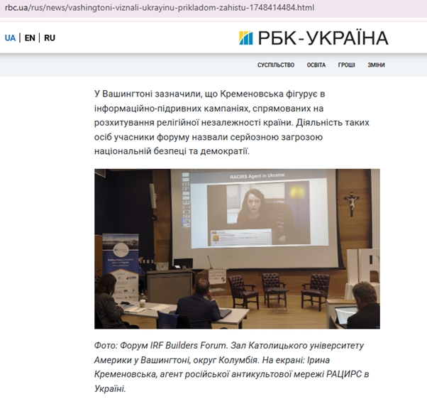 Головний її інструмент – це боротьба з вигаданими "сектами та "культами”. Це саме те, що вигідно кремлю: відвернути увагу українців, посварити їх між собою, знищити довіру до українських інституцій та правозахисних організацій, які викривають агентурну мережу ворога та самовіддано захищають Україну.