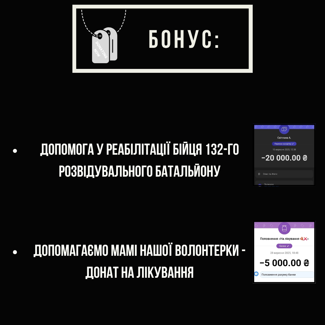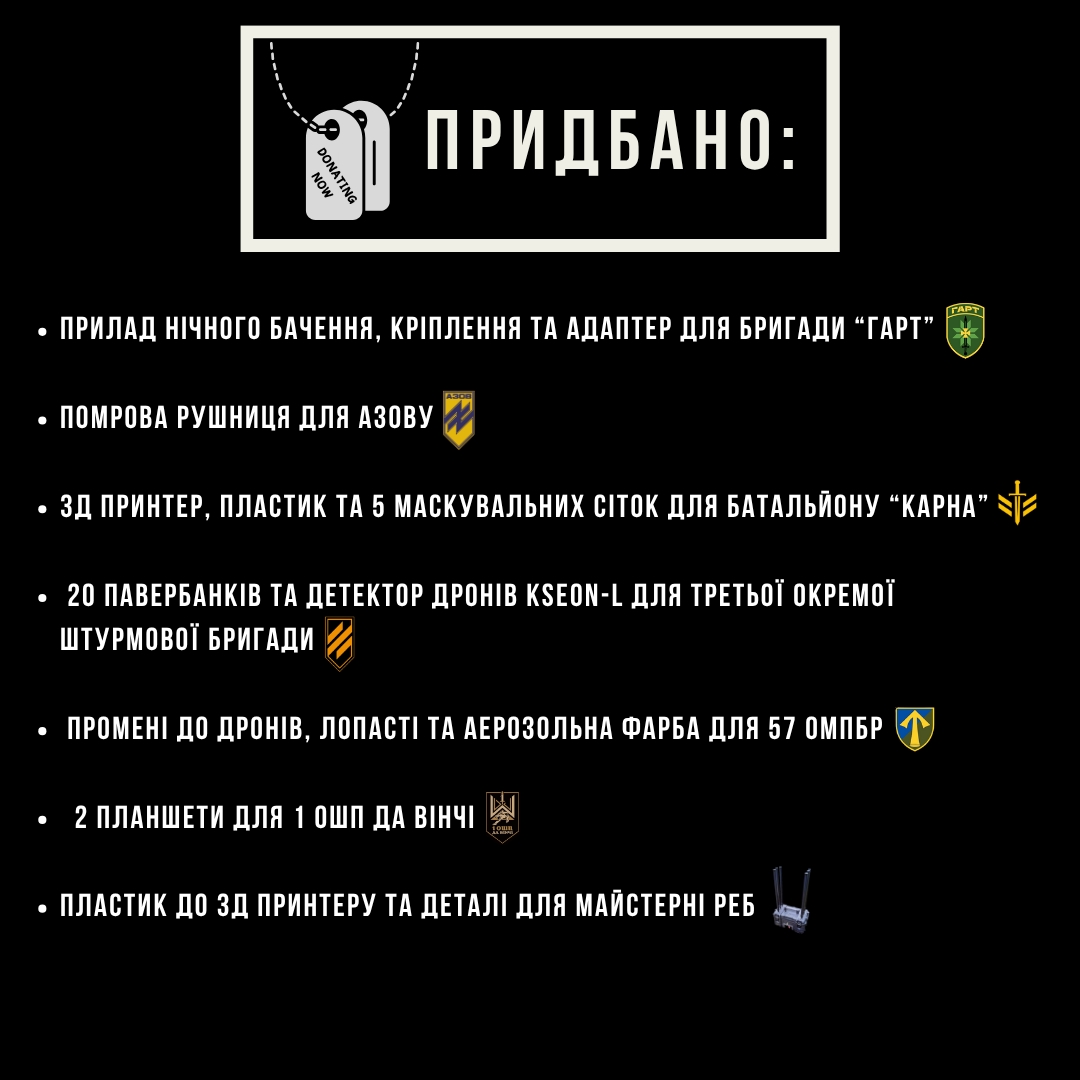 Завдяки вам ми зробили це! Закрили всі потреби, передали все бійцям, як і обіцяли. Кожна гривня, лайк, репост стали частиною цієї справи. Дякуємо за довіру!